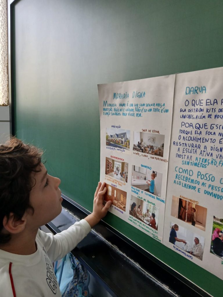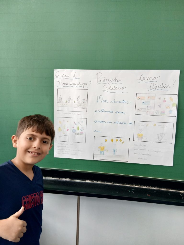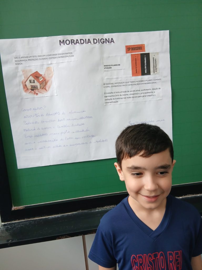 Nossos alunos refletiram sobre o que é uma moradia digna, pensaram em formas de ajudar pessoas em situação de vulnerabilidade e conheceram ONGs que apoiam pessoas em situação de rua.