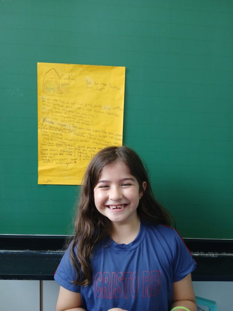 Como culminância, cada criança escolheu uma forma de expressão para compartilhar seus aprendizados: poemas, músicas, cartazes e histórias cheias de significado e sensibilidade.